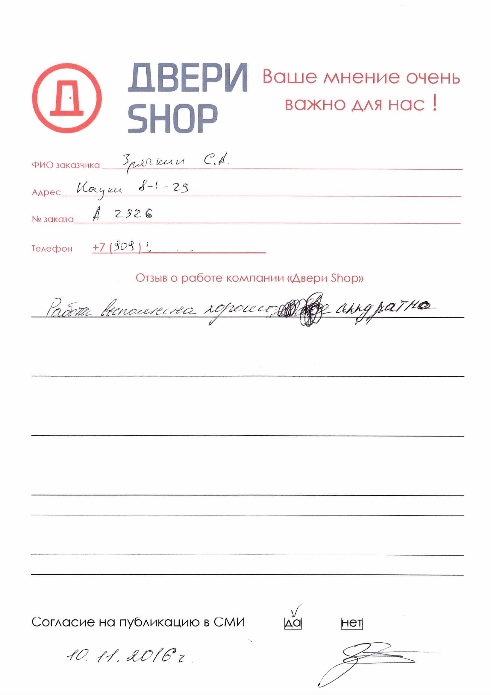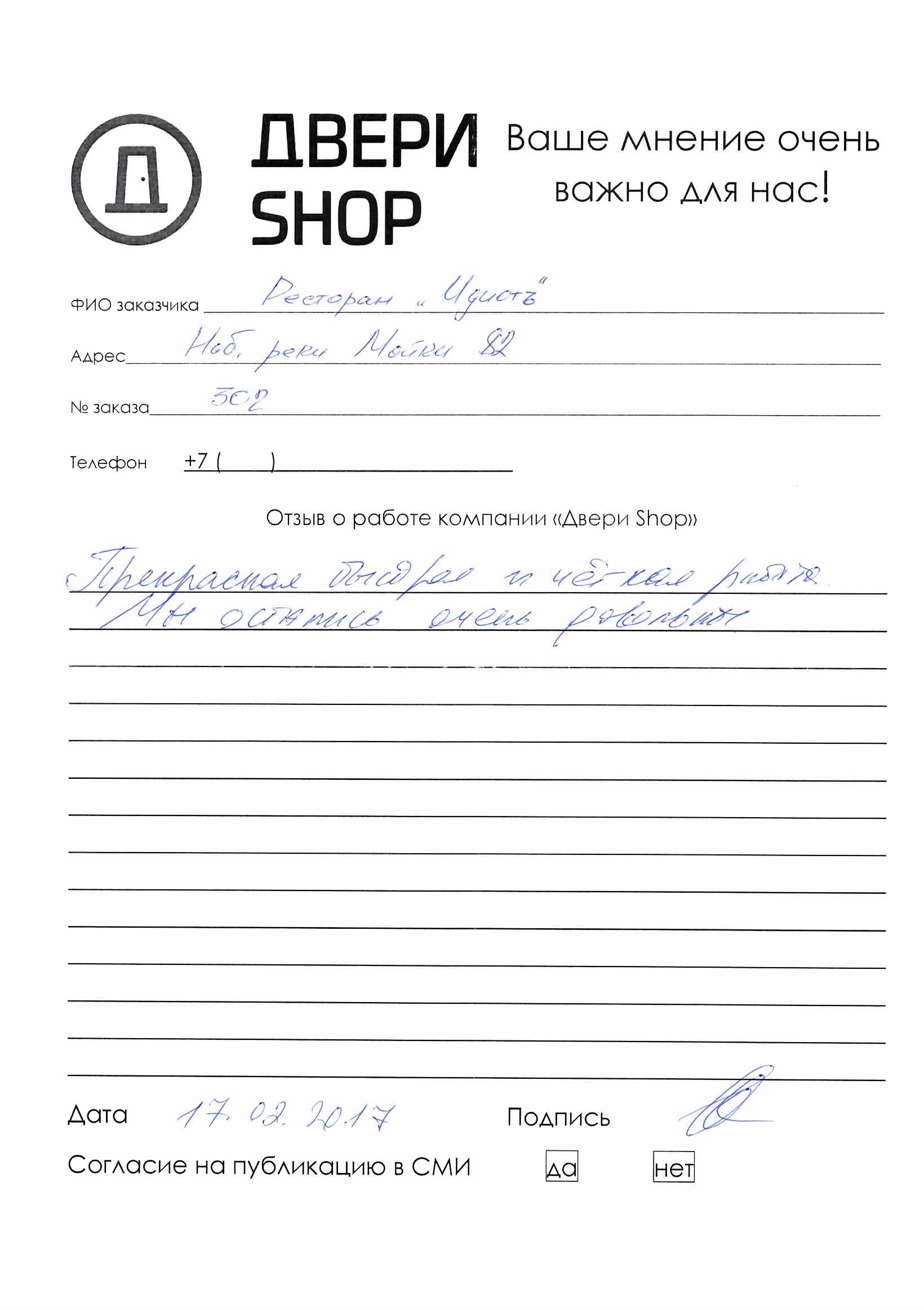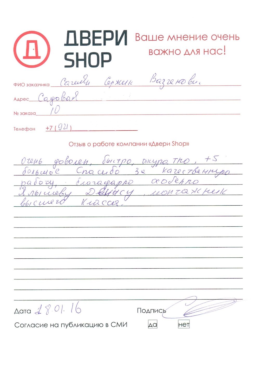 В этом разделе нашего сайта мы собрали отзывы о Двери Шоп. Здесь вы сможете узнать впечатления клиентов о нашей работе, мнения о качестве выполненного монтажа и о продукции. Также посетите страницу «наши работы» – здесь представлены фотографии уже выполненных заказов.