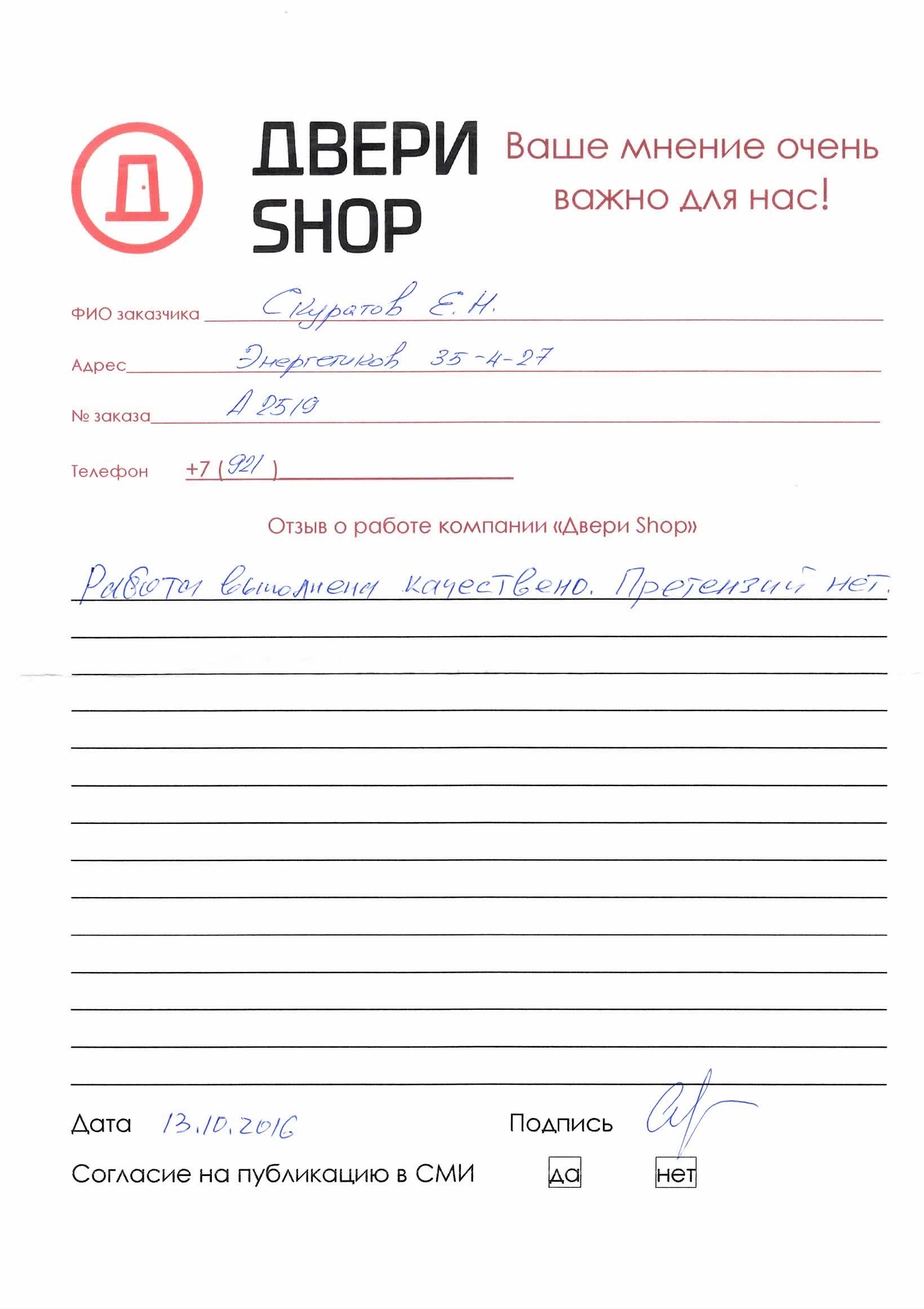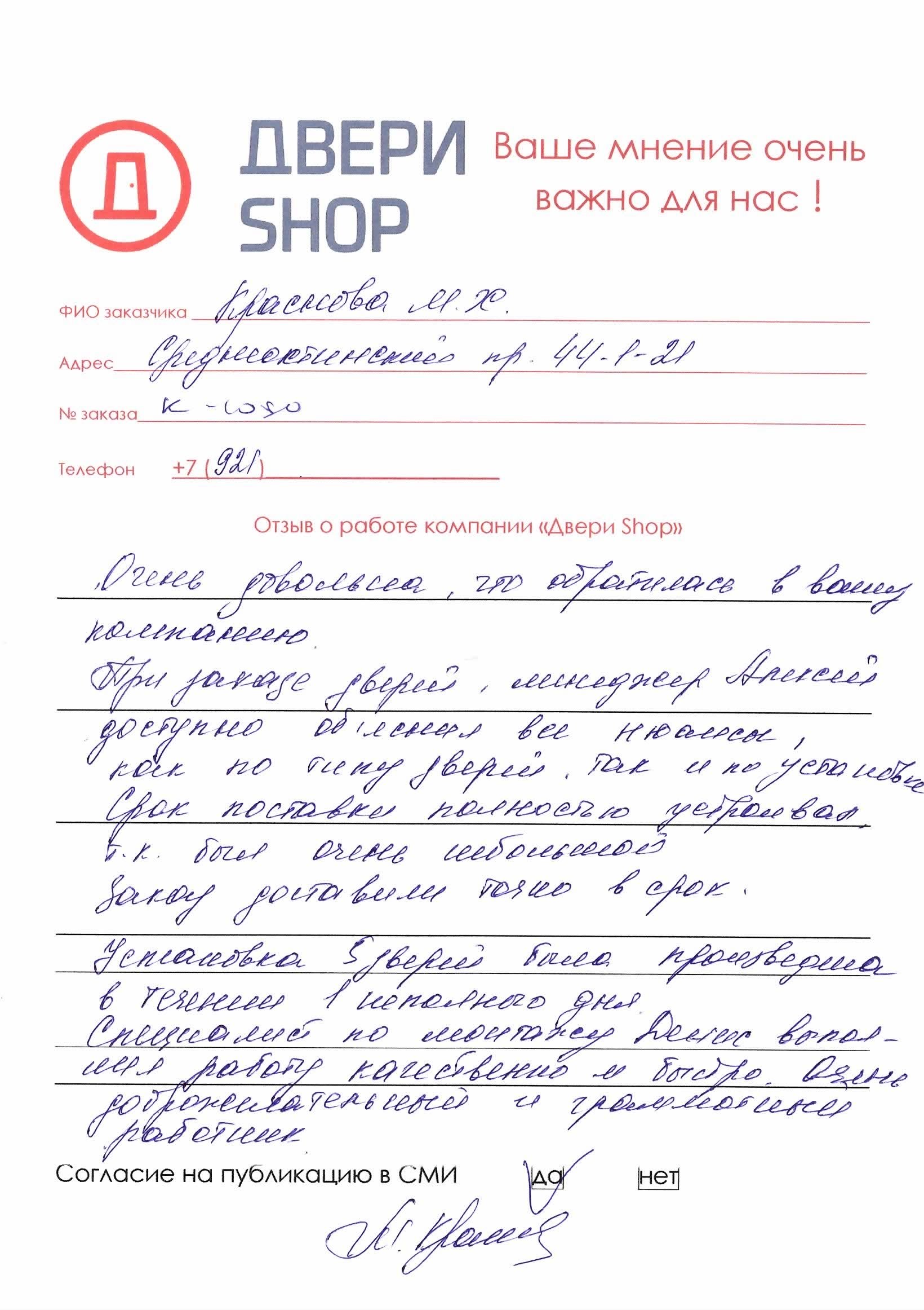 В этом разделе нашего сайта мы собрали отзывы о Двери Шоп. Здесь вы сможете узнать впечатления клиентов о нашей работе, мнения о качестве выполненного монтажа и о продукции. Также посетите страницу «наши работы» – здесь представлены фотографии уже выполненных заказов.
